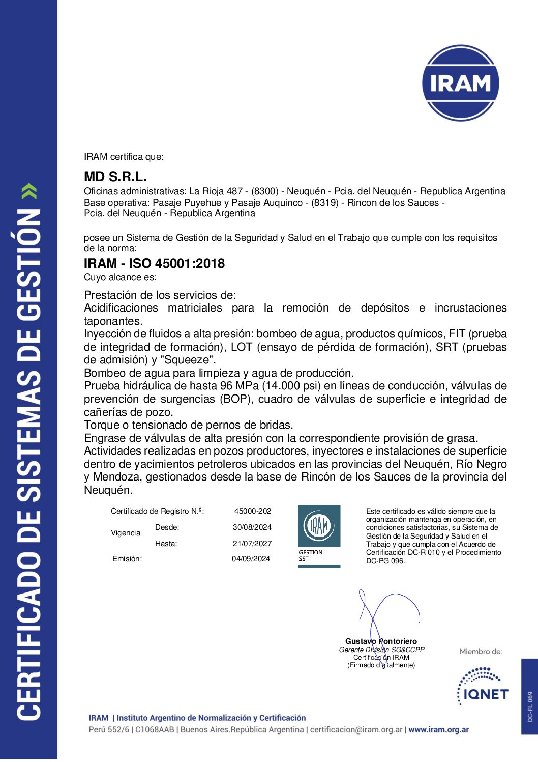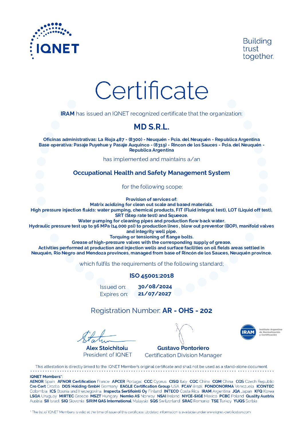 Nuestro equipo altamente capacitado y nuestra infraestructura de última generación garantizan soluciones eficientes y seguras, optimizando la productividad en cada operación. En MD SRL, combinamos experiencia, innovación y cumplimiento de los más altos estándares de seguridad para entregar resultados confiables y sostenibles.