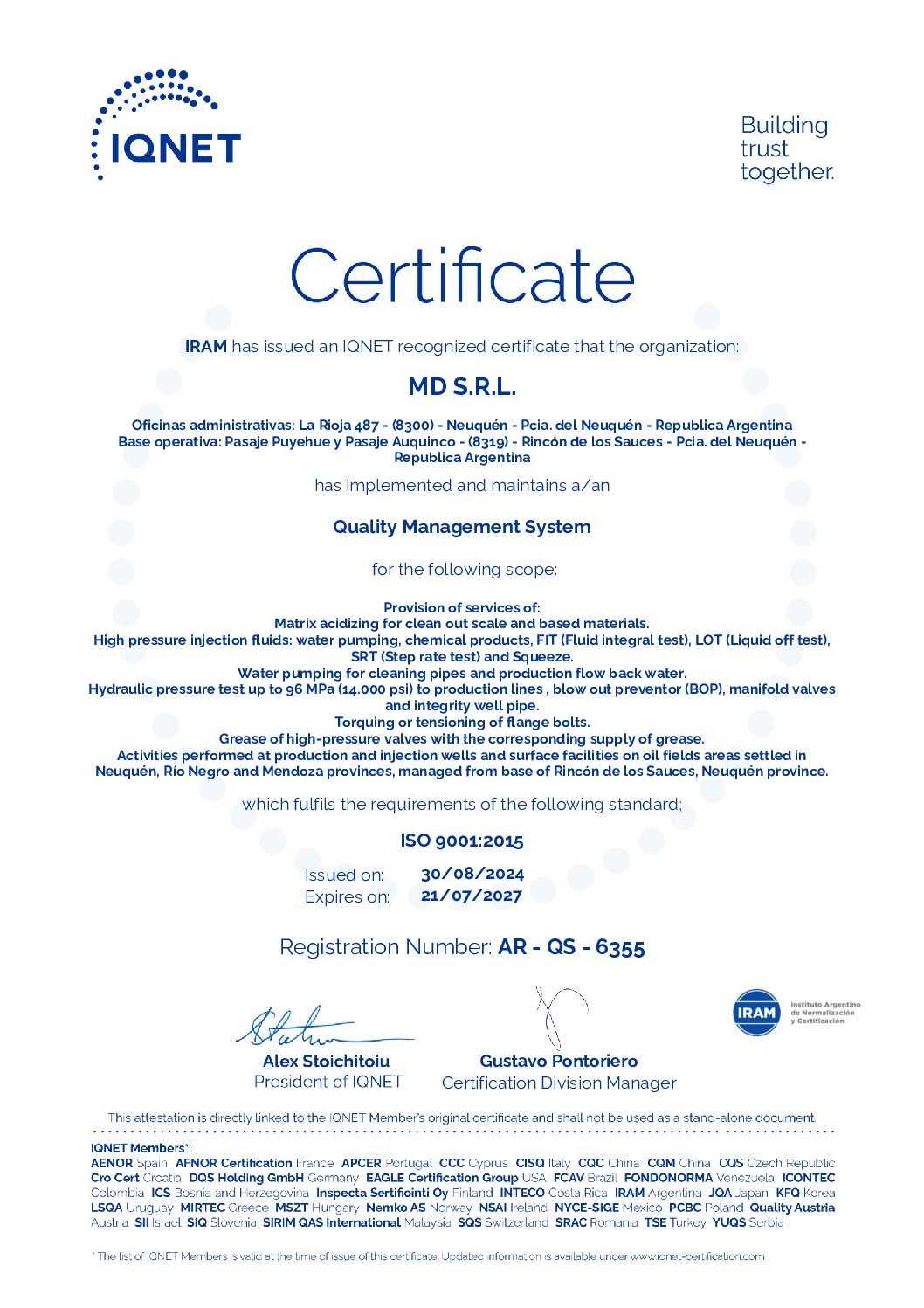 En MD SRL, contamos con más de 17 años de experiencia brindando servicios de bombeo y operaciones especializadas para la industria del petróleo y gas en Argentina. Desde nuestra base en Rincón de los Sauces, nos destacamos por nuestra calidad, adaptabilidad y un firme compromiso con nuestros clientes, ofreciendo disponibilidad operativa 24/7.