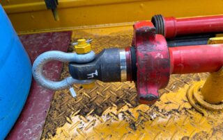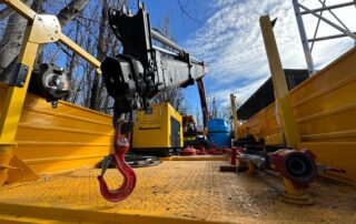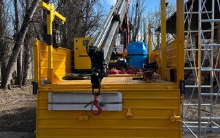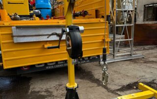 Brazo de rescate con malacate retráctil y sistemas anticaídas, diseñado para operaciones seguras en espacios confinados.