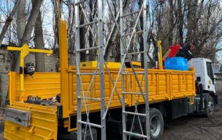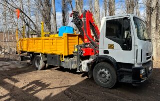 Unidad Integral de Trabajo Autónomo: Camión equipado con hidrogrúa de 12 toneladas y 14 metros de extensión para tareas de manejo y levantamiento.